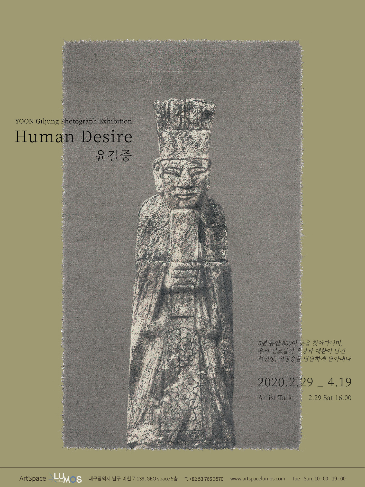 이번 윤길중 작가의 Human Desire 전시는 루모스와 일본의 AKAAKA가 공동으로 작품집을 출판, 이를 기념한 출간기념 전시이다. 오랜 시간 전국을 돌며 선조들의 욕망과 애환을 카메라에 담았고 그 결실로 탄생한 작품과 작품집을 함께 선보인다.