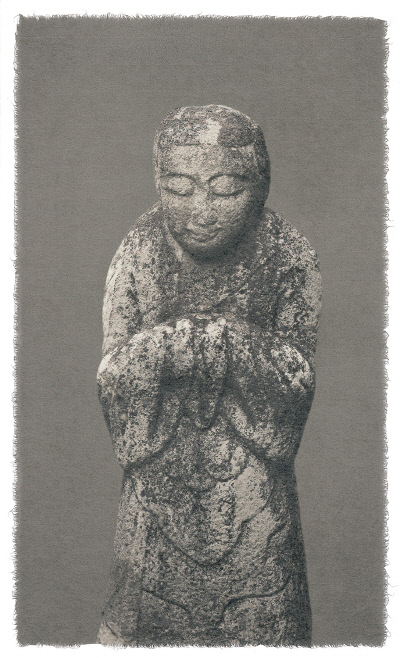 녹록하지 않은 삶 속에서 위안을 얻고 미래의 희망을 기원하고자 석장승에 새겼던 간정한 염원, 죽어서도 자신의 영혼을 영원히 남기고 싶었던 영생에 대한 선조들의 인간적인 욕망을 예술적인 경지로까지 승화시키기 위해 윤 작가는 어떤 표현법을 구사했을까? 해결책은 한지에 있었다. 작가는 전통한지 위에 사진을 인화했다.