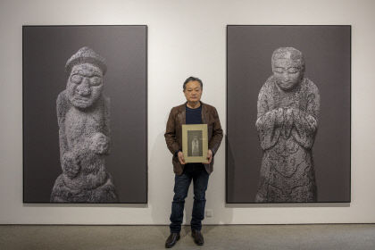 윤 작가는 녹록하지 않은 삶 속에서 위안을 얻고 미래의 희망을 기원하고자 하는 마음, 죽어서도 석인상에 자신의 영혼을 오래도록 남기고 싶은 욕망을 담은 석장승과 석인상을 찍은 'Human Desire'전을 17일까지 아트스페이스 루모스에서 열고 있다.