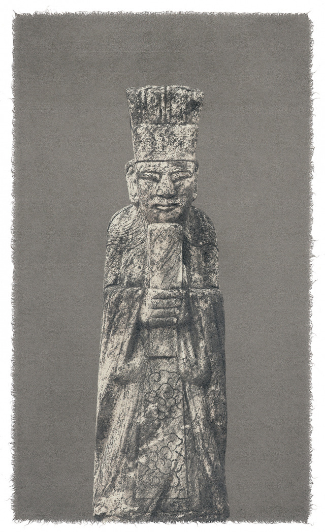 윤 작가는 우리 선조들의 욕망이 담긴 석인, 석장승을 단순히 사료적인 목적뿐만 아니라 예술 작품으로 승화시키기 위한 매체로 전통한지 위에 담아냈다. 모노톤 위의 한지에 자연스레 서있는 듯한 석인, 석장승의 모습은 우리 선조들과 함께 오랜 세월 꿋꿋하게 버텨온 굳센 의지와 더불어 가장 한국적인 아름다움을 동시에 선사한다.