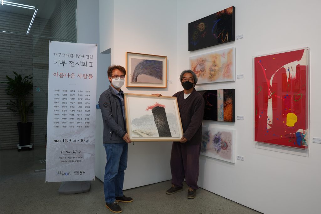 (사)전태일의 친구들(이사장 이재동)이 대구전태일기념관 건립 기금 마련을 위한 전시회 ‘아름다운 사람들’을 지난 3일 남구 이천동 아트스페이스 루모스(대표 석재현 사진작가)에서 개막했다. 오는 10일까지 열리는 이번 전시에는 정하수, 이우석을 비롯한 지역 작가 45인과 광주 지역 작가 3인, 민중미술가 홍성담, 이철수까지 작가 50인이 작품 68점을 내놨다.