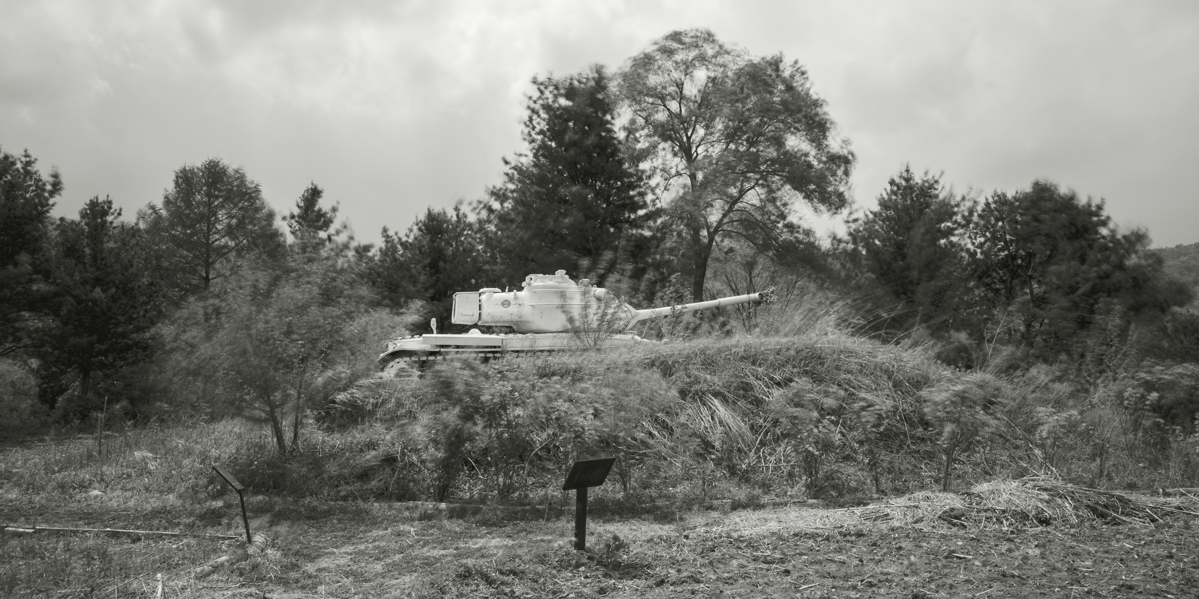 마지막으로 임안나 사진가는 <Frozen Hero> 시리즈를 선보인다. 고속도로 휴게소, 놀이공원, 대학교 캠퍼스, 유원지, 예기치 못한 공터에 놓인 폐무기들은 마치 초현실적인 분위기를 자아낸다. 덩그러니 놓인 무기들은 본연의 임무는 잊은 채 이제는 하나의 관광 상품으로서 역할을 하고 있다. 하지만 그 모습은 6ㆍ25전쟁 시절 치열한 전장에서 살아남아 그 시절 아픔을 고스란히 간직하는 듯 처연하기만 하다.