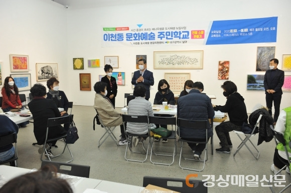 [경상매일신문=김영식기자]대구 남구청에서 주최하고 이천동 도시재생 현장지원센터가 주관한 문화예술 주민학교 '전통 소품 만들기' 강의가 오는 16일 마지막 강의를 남겨두고 아트스페이스 루모스 5층에서 인기리에 진행되고 있다.