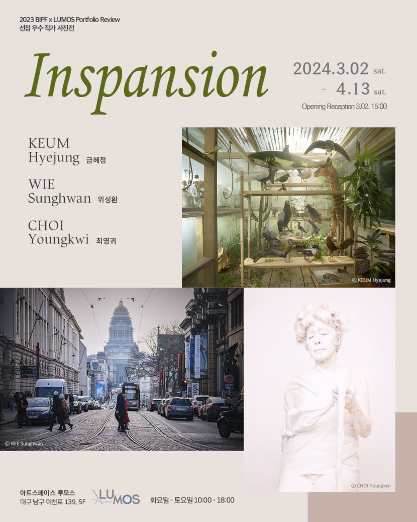 사진전문 갤러리인 아트스페이스 루모스는 2일부터 4월13일까지 '2023BIPF×LUMOS Portfolio Review(2023부산국제사진제 포트폴리오 리뷰)' 선정 우수작가 사진전 'Inspansion'을 개최한다.