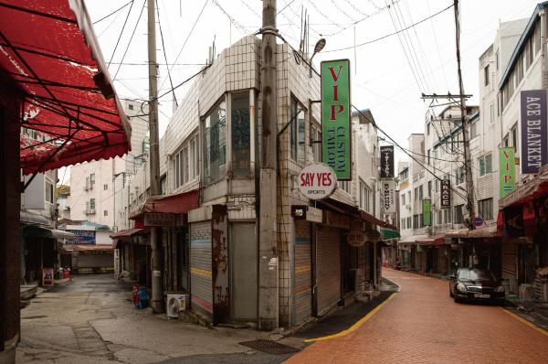 온빛 해원신진사진가상 수상작인 고은희의 ‘K-55’는 평택 미군기지 주변의 풍경과 일상을 독특한 감성으로 재해석한 작품이다. 미군 부대 앞의 이국적인 상점가, 전투기 소음, 영어 간판과 군용품으로 가득한 거리에서 ‘고향’의 풍경이 가진 낯섦을 포착했다. 작가는 이 공간을 “우리 삶의 세트장, 그리고 우리가 엑스트라가 되는 곳”으로 표현하며, 공간이 가진 문화적 격차와 정체성의 문제를 제기했다.