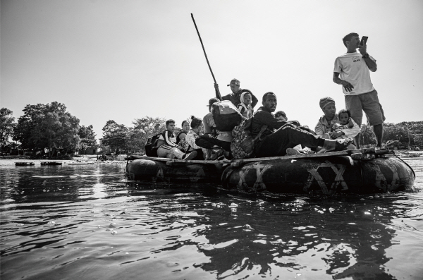 온빛 후지필름사진상을 수상한 양희석의 ‘벽으로 가는 길’은 멕시코에서 미국으로 향하는 이민자들의 여정을 수년간 밀착 취재한 작품이다. 트럼프 행정부 이후 강화된 이민 정책과 국경 장벽으로 인해 벼랑 끝으로 내몰린 이들의 삶을 기록했다. 작가는 단 한 장면의 ‘결정적 순간’보다는 3000km에 달하는 이민 행렬 속 일상적 순간과 얼굴들을 포착함으로써 국경 장벽이 가진 상징성을 부각시켰다고 평가받는다.