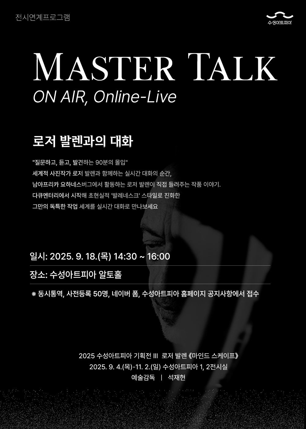 9월 18일 오후 2시 30분에는 로저 발렌과의 온라인 라이브 마스터 토크 프로그램도 준비되어 있습니다.