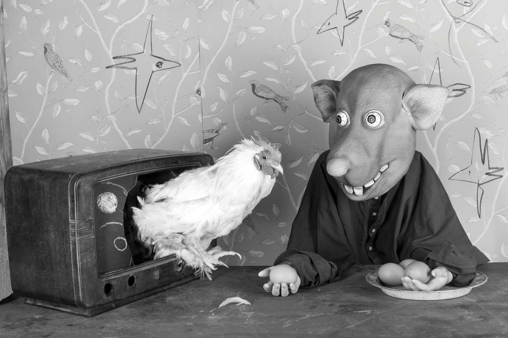 〈로저, 혼돈의 쥐 Roger the Rat〉(2015–2020)는 쥐 머리를 쓴 인간 캐릭터를 통해 문명에서 밀려난 존재, 사회적 주변인, 인간 본성의 욕망을 은유한다. 가면과 무대 세트로 구성된 장면은 블랙코미디처럼 기묘하고 우스꽝스럽지만, 동시에 섬뜩한 불안을 자아낸다. 희극과 비극, 익살과 공포가 교차하는 순간, 관객은 쥐 인간의 형상 속에서 자기 내면의 불편한 자화상을 마주하게 된다.