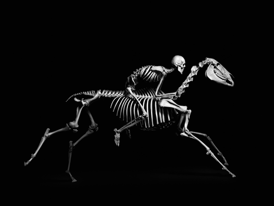 마치 X-레이 필름을 들여다보는 듯하다. 빛에 드러난 말의 골격이 어둠을 가르며 질주하고, 그 위에 올라탄 인간의 골격이 같은 리듬으로 몸을 낮춘다. 정지된 이미지지만 그 속에는 속도와 생명, 그리고 에너지가 흐른다. 검은 배경 앞에서 말과 사람의 뼈대를 조각처럼 신비롭게 드러낸 이는 벨기에 출신의 사진가 패트릭 그리에스다. 그의 사진집 ‘Evolution’에는 수십억 년의 진화를 품은 척추동물의 골격 250여 점이 담겨 있다. 책에 담긴 그의 예술적 오브제들은 예술과 과학의 경계를 자유로이 넘나든다.