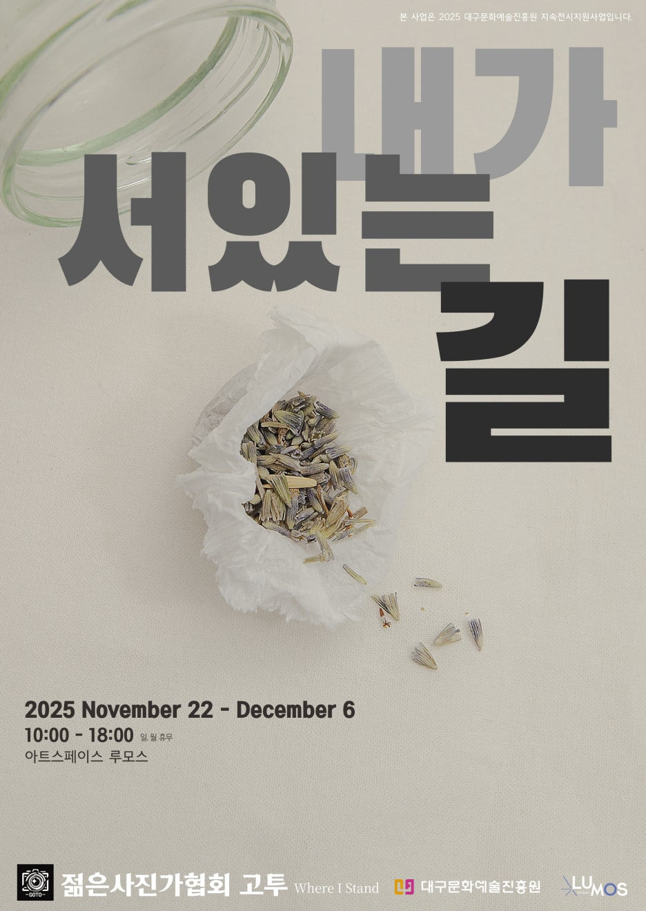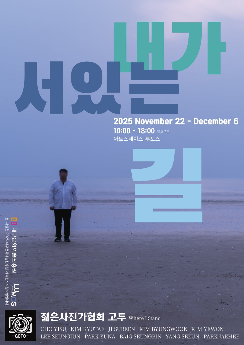 젊은사진가협회 고투(GOTO)가 기획한 세 번째 전시 《내가 서있는 길》이 11월 22일부터 12월 6일까지 아트스페이스 루모스에서 개최됩니다. 이번 전시는 사진을 통해 동시대를 살아가는 청년들의 고민과 시선을 탐구하며, 10명의 젊은 작가들이 참여해 사진부터 설치 작업에 이르기까지 다양한 형식의 작품을 선보입니다.