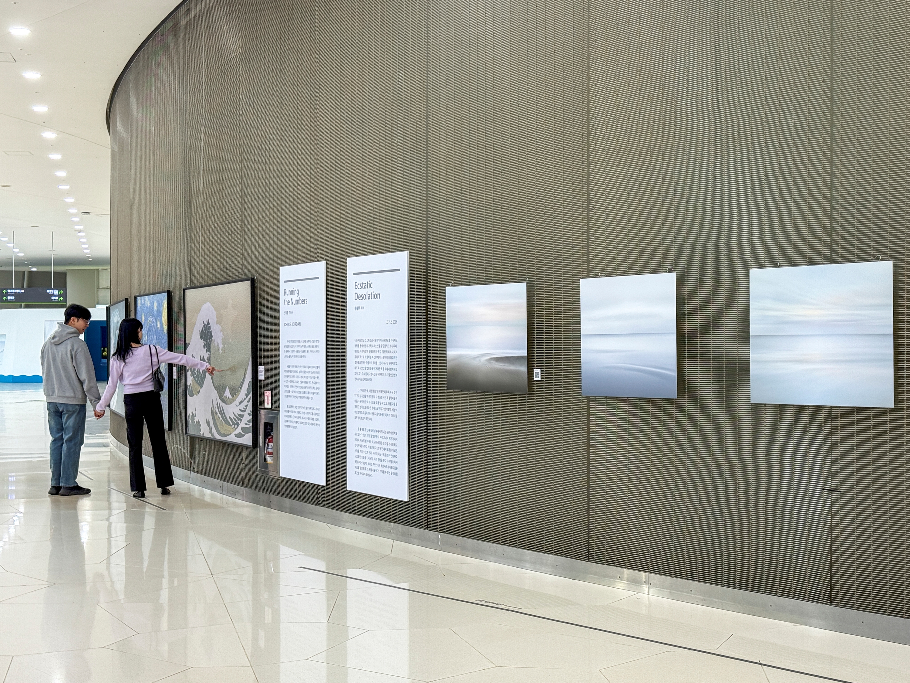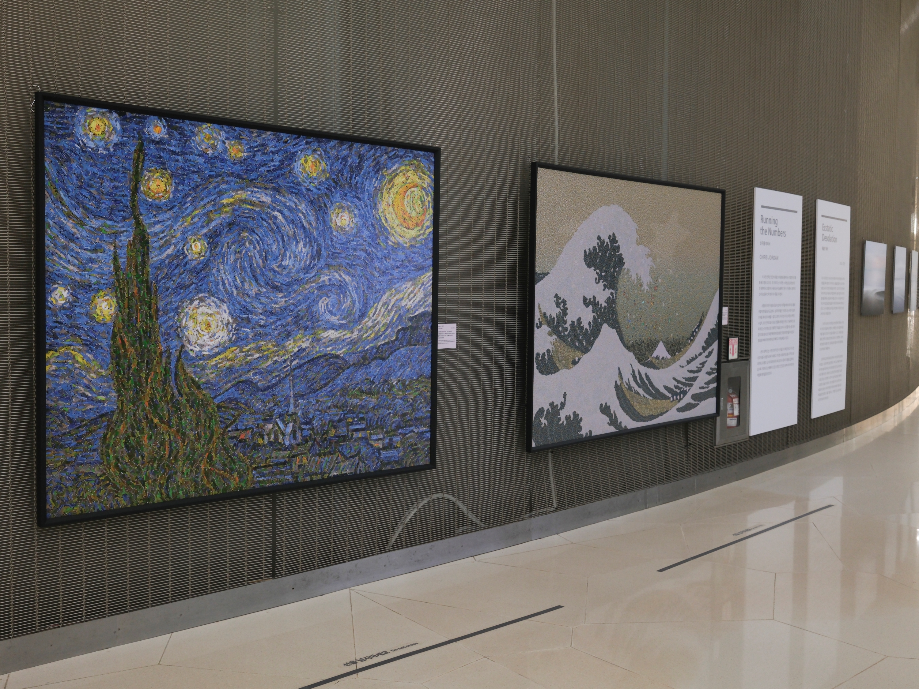2019년 서울 전시에서 플라스틱을 가득 머금고 고통스럽게 죽어가는 새의 모습을 포착해 큰 반향을 남겼던 미국 작가 크리스 조던(Chris Jordan)의 작품도 소개된다. 멀리서 보면 명화처럼 보이지만 가까이서 보면 버려진 쓰레기로 구성된 ‘러닝 더 넘버스(Running the Numbers, 2004-2018)’, 그리고 파타고니아 해안에서 촬영한 자연의 미묘한 아름다움을 담은 최신작 ‘황홀한 폐허(Ecstatic Desolation, 2021~현재)’가 함께 전시된다.