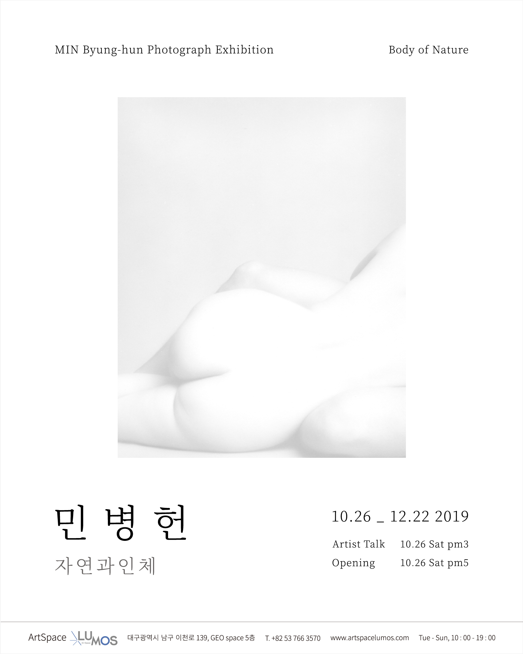 아트스페이스 루모스의 일곱 번째 기획전이자 지역에서 최초로 열리는 사진가 민명헌의 개인전, <민병헌: 자연과 인체> 전시는 흘러내리는 붓의 움직임처럼