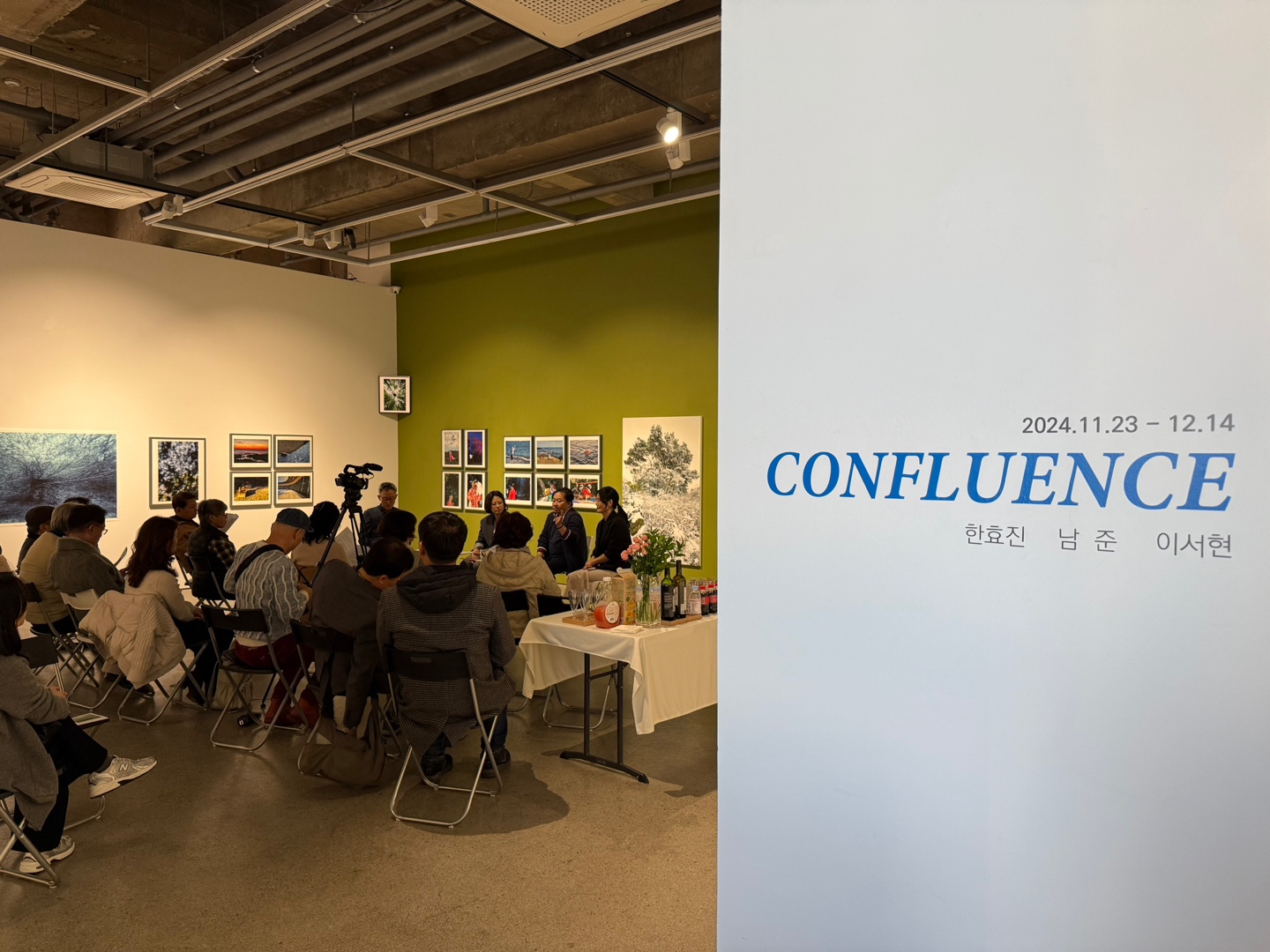 사진을 향한 열정으로 힘차게 달려가는 세 명의 사진가들이 여기 모였다. 그들의 철학과 내면이 담긴 작품의 큰 흐름이 한 곳에서 만났다는 의미에서 이번 전시 제목을 Confluence로 정했다. 여러 강물이 한 지점에서 합류하여 힘차게 흘러가듯 이번 전시 <Confluence>를 통해 작가들이 전하는 다양한 목소리, 사진 매체가 가진 매력을 발견하는 기회가 되기를 바란다.