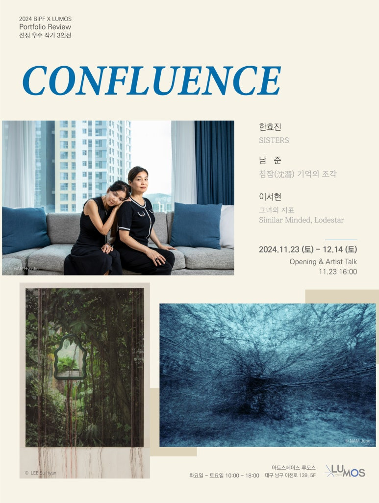 아트스페이스 루모스에서는 2024부산국제사진제 포트폴리오 리뷰에서 우수작품으로 선발된 3명의 사진가가 함께하는 <Confluence> 전시를 오는 11월 23일부터 12월 14일까지 선보일 예정이다.
