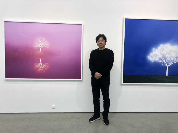 몽환적인 빛의 향연 때문일까? 흡사 작품은 디지털 합성처럼 보인다. 한 눈에 인지되는 간명한 대상을 몽환적이면서도 빨려들 듯 한 압도감으로 빛이 감싼 형상이 현실과 비현실의 경계를 허물기 때문이다. 실제 존재하는 대상을 이처럼 몽환적인 압도감으로 담아내는 것이 아날로그에서 가능할까? 그가 “순수 아날로그 작품”이라고 선을 그었다. “일종의 퍼포먼스의 결과죠.”