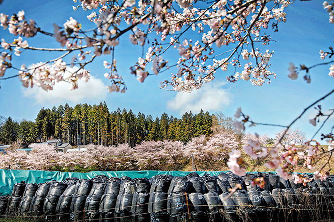 전시 주제는 작품에도 오롯이 드러난다. 반어법적인 장치가 곳곳에 묻어 있다. 언뜻 보면 아름다운 풍경 사진인데 무시무시한 ‘사실’이 숨겨져 있다. 방사능 오염지역에서 열리고 있는 축제 사진. 너무나 평화스러워 보인다. 흐드러지게 핀 유채꽃이 탐스럽다. 피난한 사람들이 돌아와서 벌인 축제인데, 자세히 들여다보면 거대한 ‘소라색 밭’이 보인다. 방사능 오염토를 쌓아놓고 소라색 포장지로 덮어놓은 것이다. 축제 당시 대부분의 일본 언론들은 배경을 삭제하고 축제 행렬만 보도했다. 일본 정부는 “이제 정상”이라고 호도했다. 작가의 사진이 공개됐을 때 일본 사람들은 그제야 충격에 빠졌다. 작가는 “1개에 1t에 달하는 오염토가 무려 2천200만개에 달한다. 방사능에 오염된 나무나 숲은 제거하지도 못한 상황”이라고 했다. 석양이나 벚꽃을 배경으로 한 풍경 사진에도 오염토가 어김없이 등장한다. 작가는 “가능하면 아름답게 찍고 싶었다”고 했다.