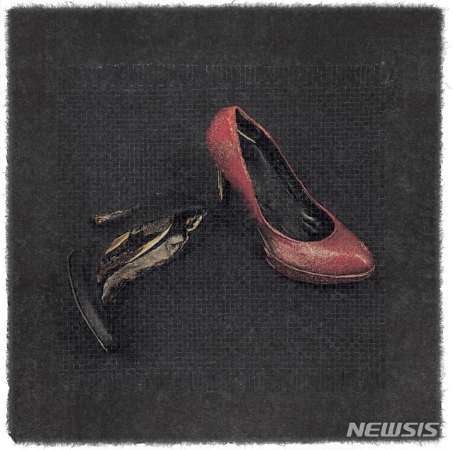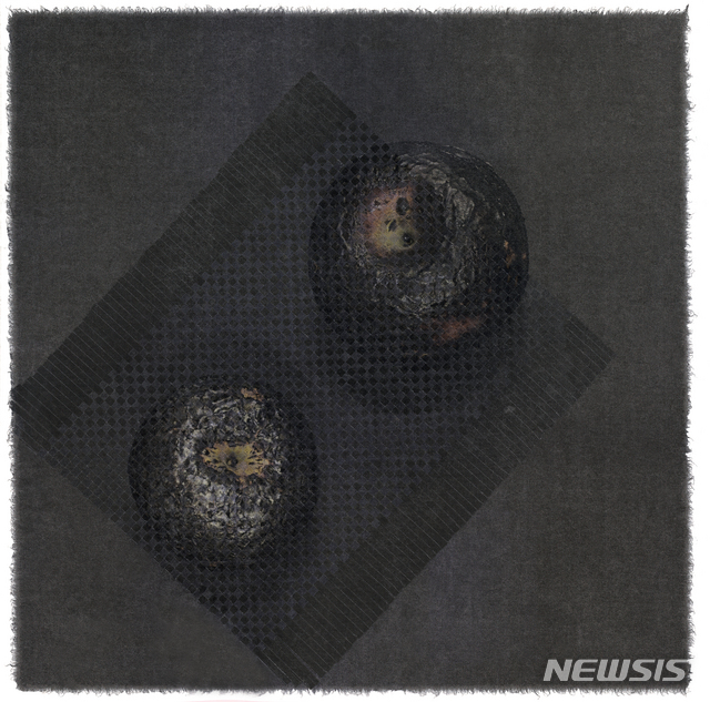 【서울=뉴시스】조수정 기자 = 사과, 구두, 옥수수, 호두, 시계···. 작가에 의해 의도적으로 불 태워진 사물의 사진이다. 불에 타서 검게 그을린 사물들의 남은 색마저 지운 후 두 장씩 인화해서, 한 장은 수직으로 한 장은 수평으로 잘랐다. 고유의 색을 잃어버린 대상의 형체까지 해체한 것이다. 그런 다음, 마치 바구니를 짜듯이 한 줄은 씨줄 한 줄은 날줄 삼아 두 장의 사진을 다시 이었다. 그러자 2차원의 평면이던 사물이 3차원의 입체로 바뀌었다.